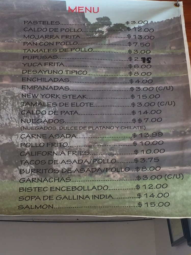 Rinconcito Salvadoreño Menu